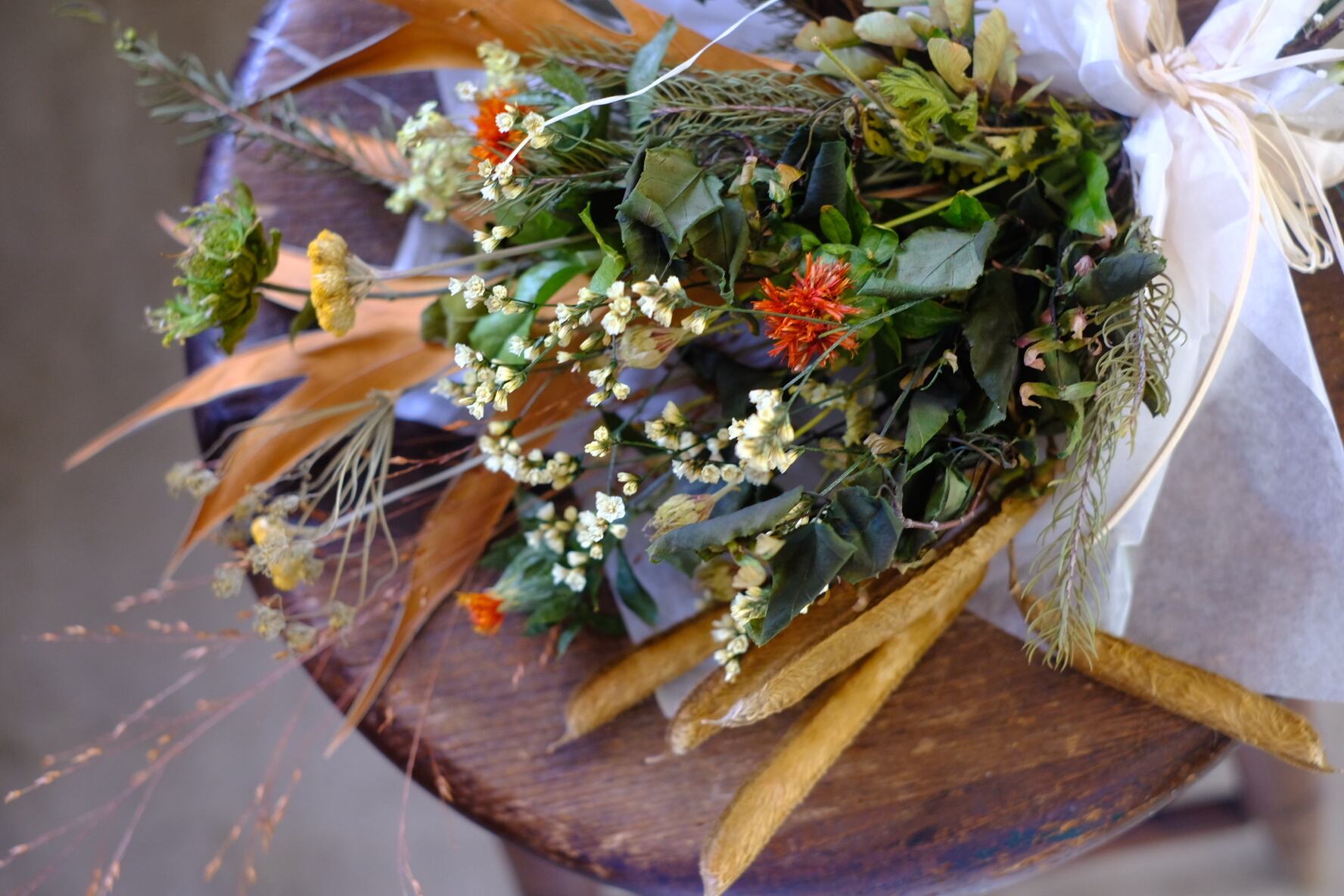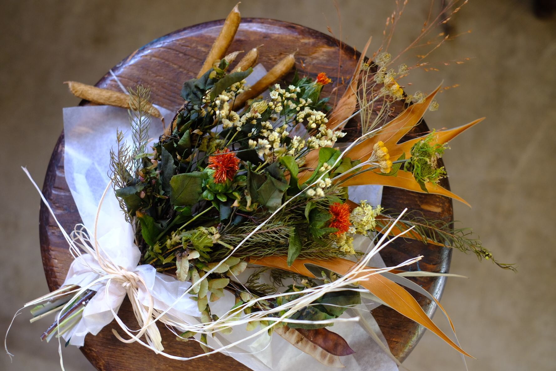 プリザーブドフラワーは生花を保存加工することで、その柔らかな風合いや形を長く楽しめるようにしたものです。まるで生花のような風合いですが、プリザーブドフラワーを使用しているため長く楽しんでいただけます。ただ、自然の素材ですので2~3年ほどで花弁にヒビが入り、お色も退色してきます。そんな移ろいゆく様も自然素材の面白さとして楽しんでいただけたらと思います。