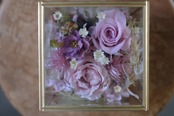 アンティークゴールドの縁取りの綺麗なガラスboxにプリザーブドフラワーフラワーをアレンジしました。