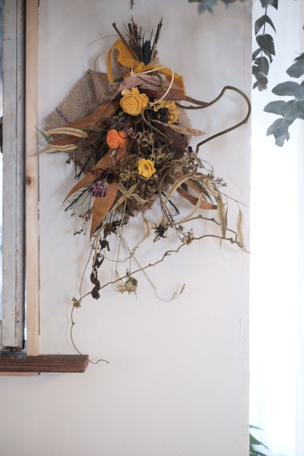こちらの商品はプリザーブドフラワーやドライフラワーを組み合わせた スワッグになります。