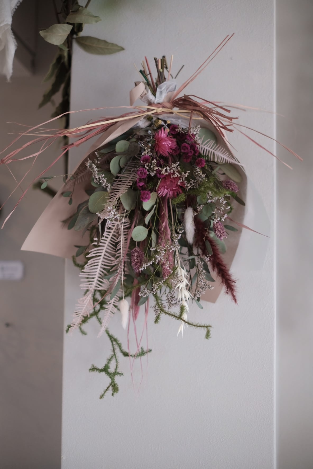 こちらの商品はプリザーブドフラワーやドライフラワーを組み合わせた スワッグになります。