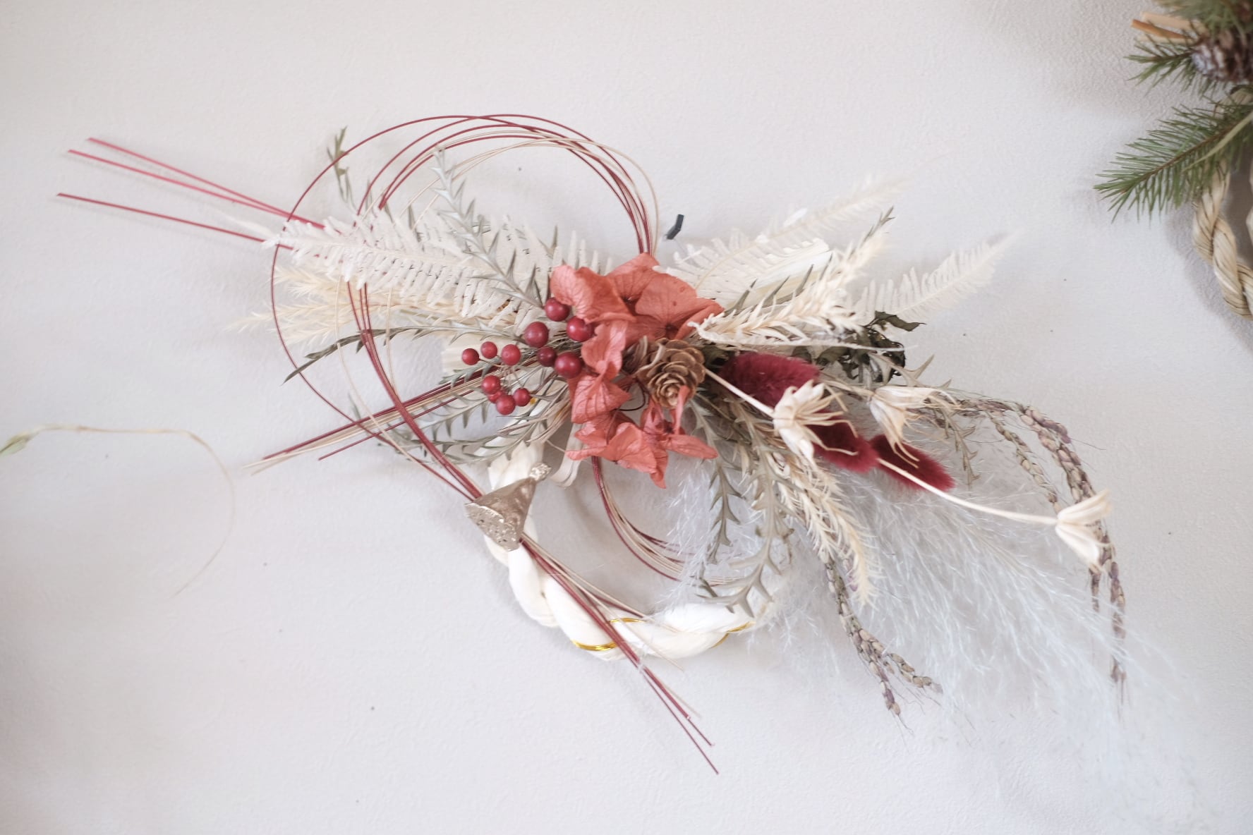 プリザーブドフラワーやドライフラワーを使用したナチュラルな雰囲気のお飾りです
