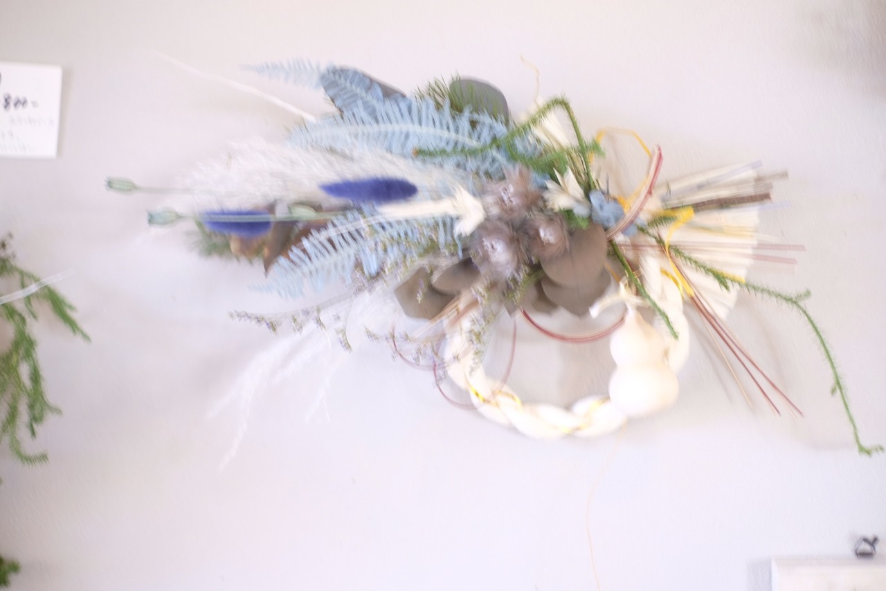 プリザーブドフラワーやドライフラワーを使用したナチュラルな雰囲気のお飾りです