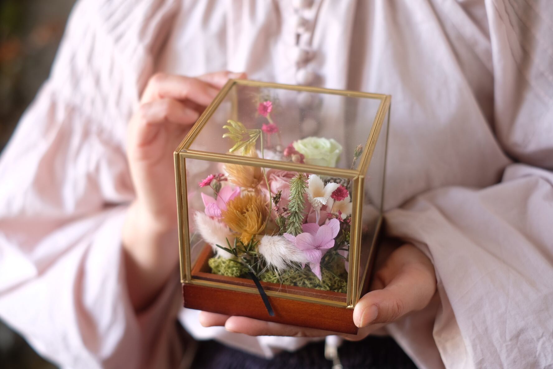 ガラスの中にお花があるため、埃などのお手入れもしやすいと好評です。