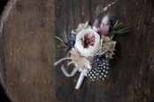 プリザーブドフラワーのローズ、アジサイ、葉物など本物の植物を加工したものを使用したコサージュです。