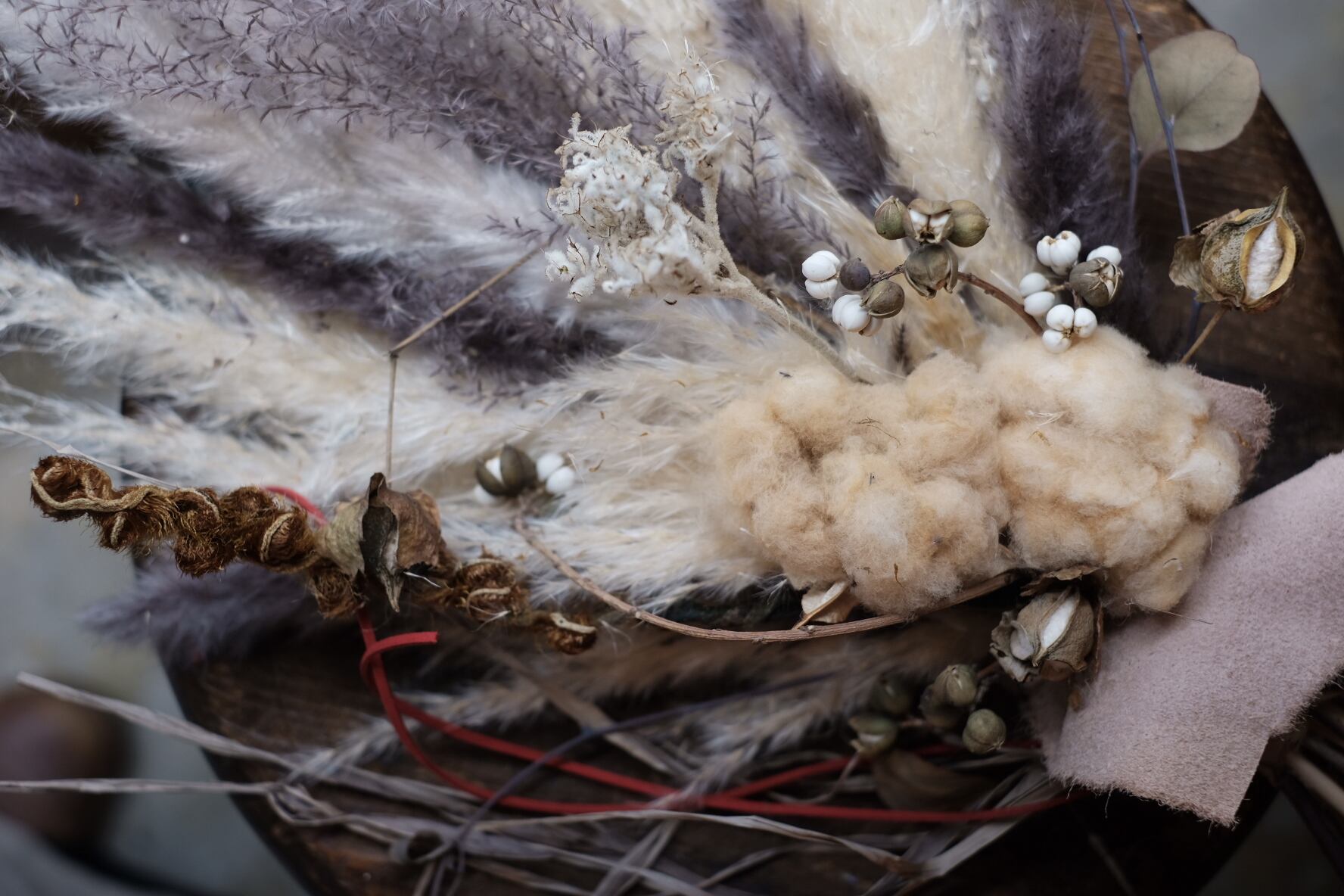 ドライフラワー|コットンフラワー、ヘゴゼンマイ、パンパスグラス、テールリード、ススキ、ナンキンハゼ